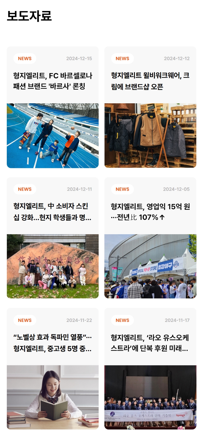 형지엘리트 홈페이지 제작