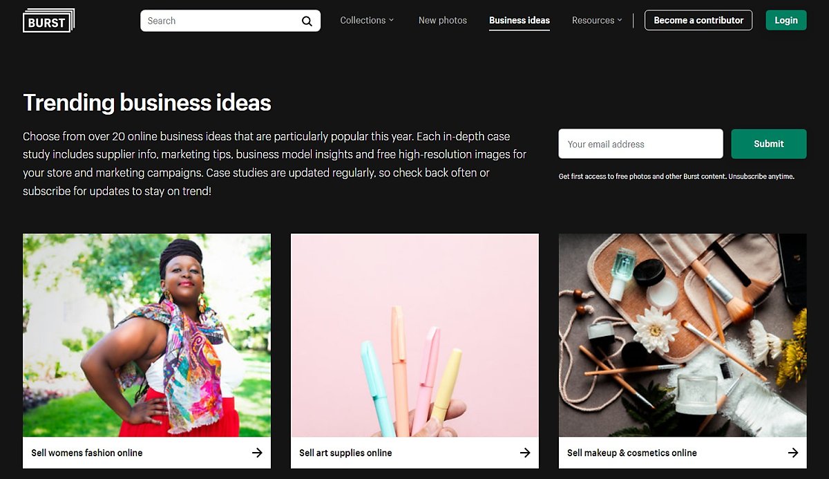 'Business Idea' 카테고리엔 각 사업 분야별로 적합한 사진들이 정리되어 있다고해요. 이커머스 마케터분들이라면 참고해보셔도 좋겠네요.