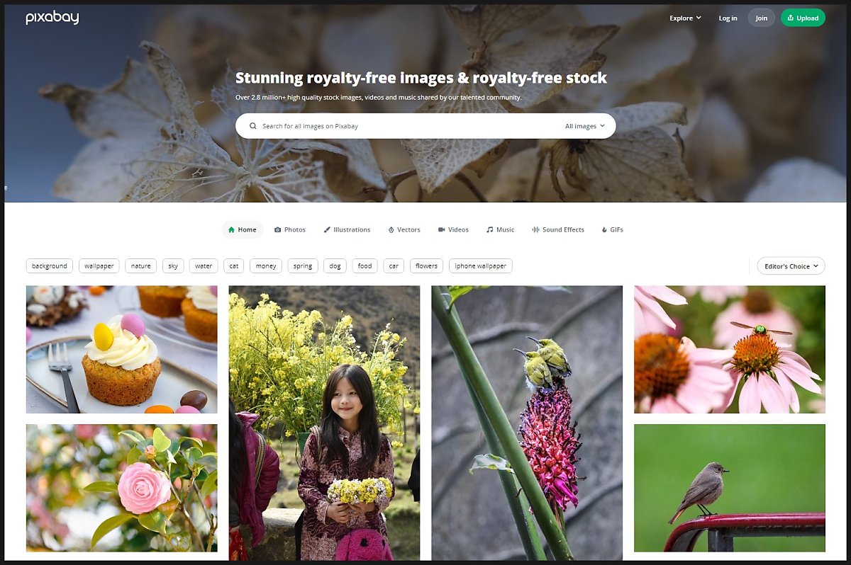 무료 이미지들 뿐만 아니라 벡터, 일러스트레이션, 동영상, 음악, gif까지 보유하고 있는 거대한 사이트인데요. 상업적 이용이 가능하며, 별도의 출처 표시도 필요없답니다.