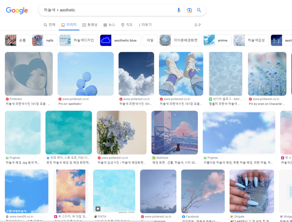 이렇게 입력하시면 내가 원하는 색감의 이미지들이 촤르르~ 나옵니다.