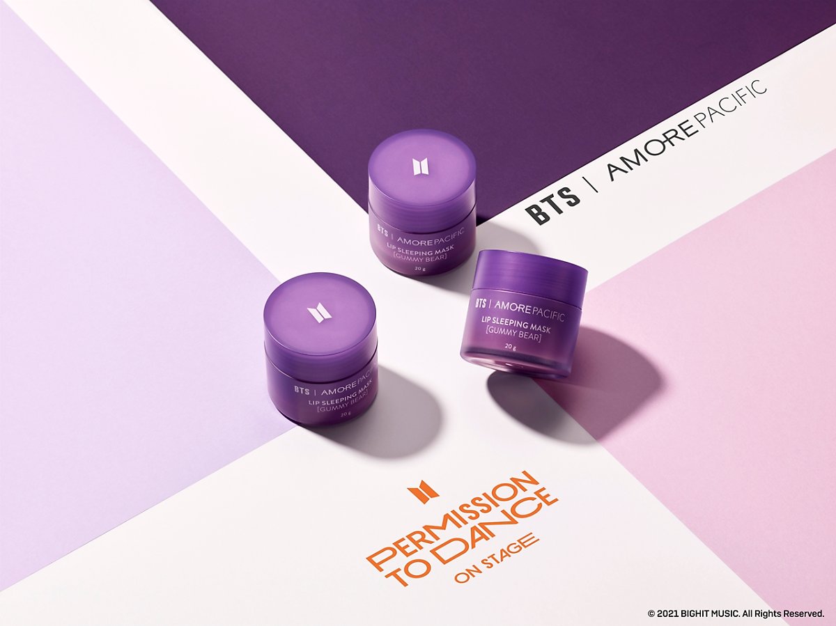 아모레퍼시픽은 지난 21년 BTS와 콜라보레이션을 통해 ‘립 슬리핑 마스크 퍼플 에디션’을 출시한 바 있습니다. 해당 제품은 세계적으로 높은 위상을 떨치고 있는 BTS의 ‘BTS PERMISSION TO DANCE ON STAGE’ 투어를 기념해 기획/제작 되었는데요. ‘스윗 퍼플 드림스!(Sweet Purple Dreams!)’라는 컨셉으로 달콤함이 특징인 ‘거미 베어(Gummy Bear)’향을 활용해 달콤한 보랏빛 꿈이란 메시지를 담아냈습니다. 또한 팬덤을 겨냥하기 위해 제품 상자에 BTS의 투어 아트웍을 반영하고 용기 전면에 그룹 로고를 입혀 소장 가치를 높였는데요. 콜라보레이션 효과를 톡톡하게 보아서 였을까요? 22년 10월 두 번째 협업 한정판을 출시하였습니다.