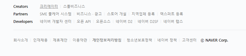 맨~하단에 이용약관, 개인정보처리방침 등등