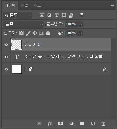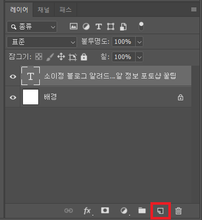 이후에 텍스트 레이어 위에 레이어 하나를 추가해 주세요.