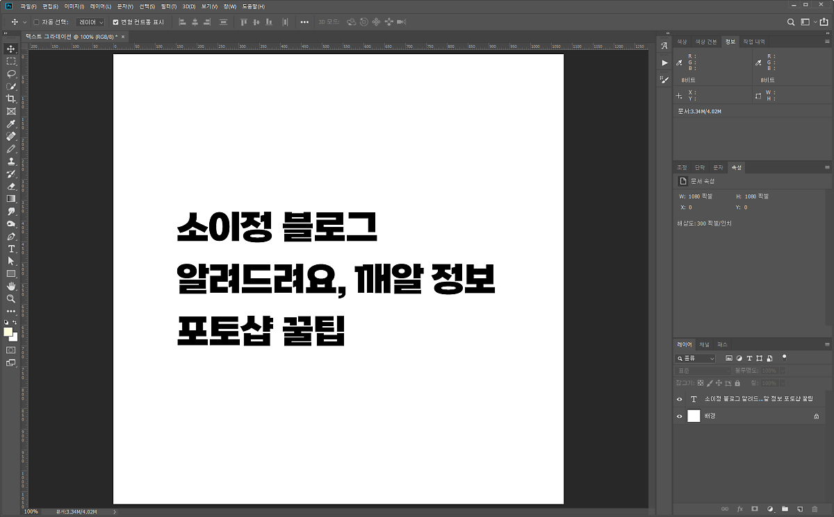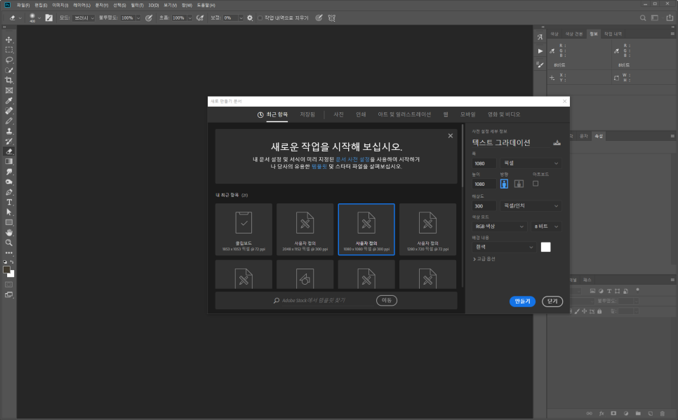0. 포토샵 켜고 새 프로젝트 생성하기