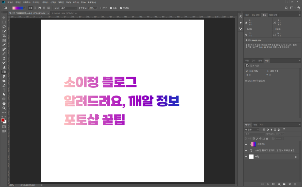포토샵으로 텍스트에 그라데이션 넣는 두 가지 방법을 알려드렸는데요.