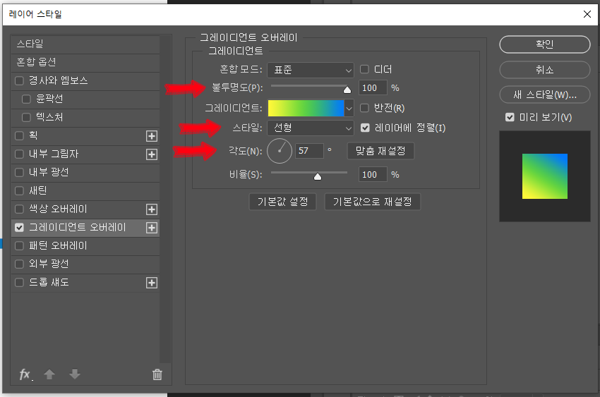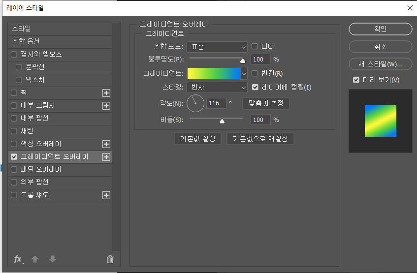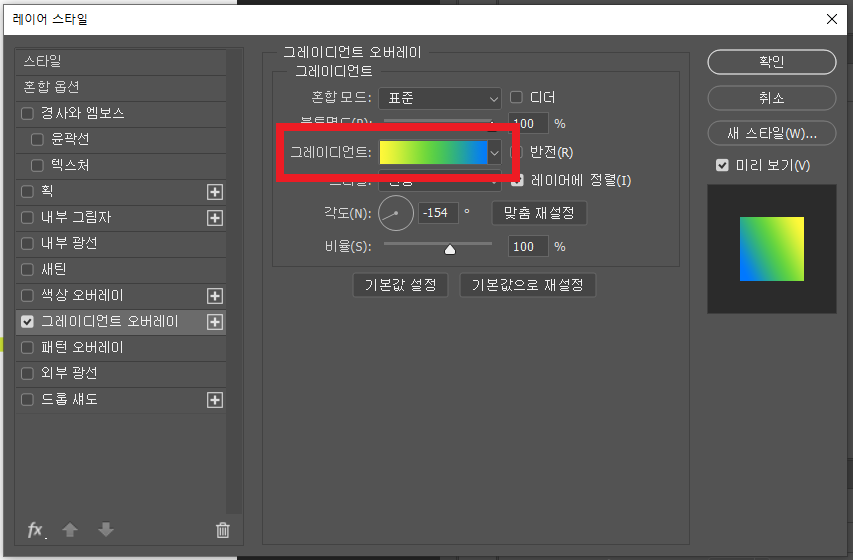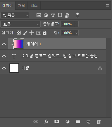 1. 레이어패널 하단에 fx클릭 -> 그레이디언트 오버레이