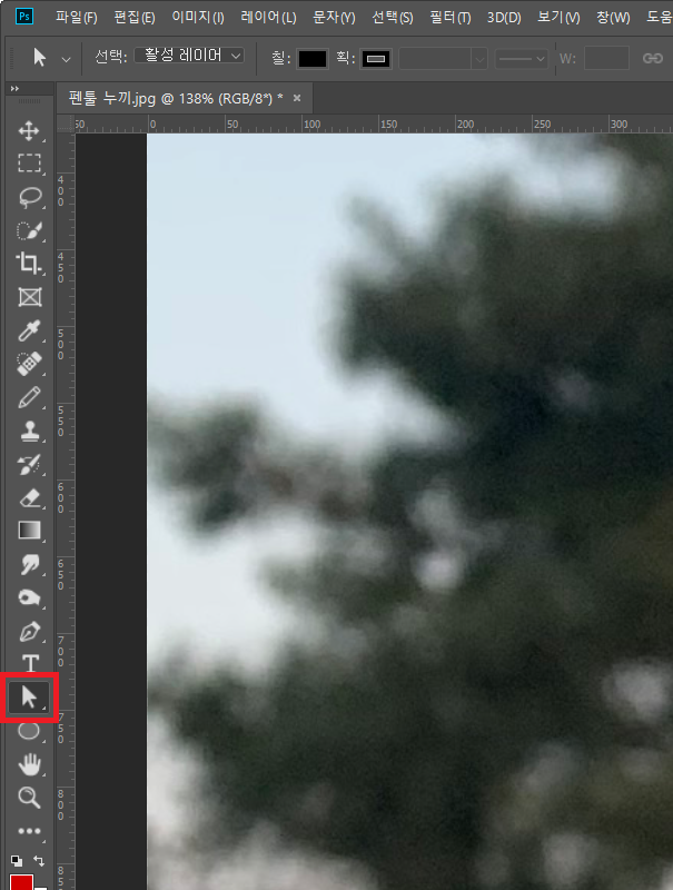 선택 툴로 패스선을 수정해 볼게요! 선택 툴은 왼쪽 툴 바 하단에 있답니다. 선택 툴을 클릭한 후 다시 이미지로 돌아가 볼게요.