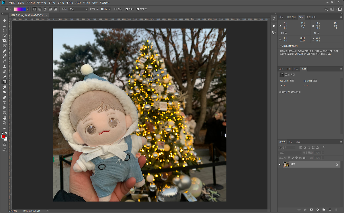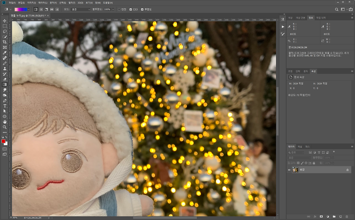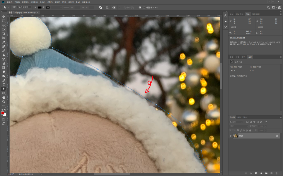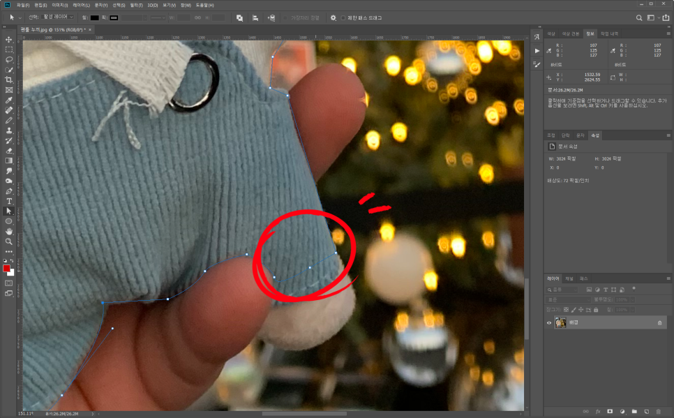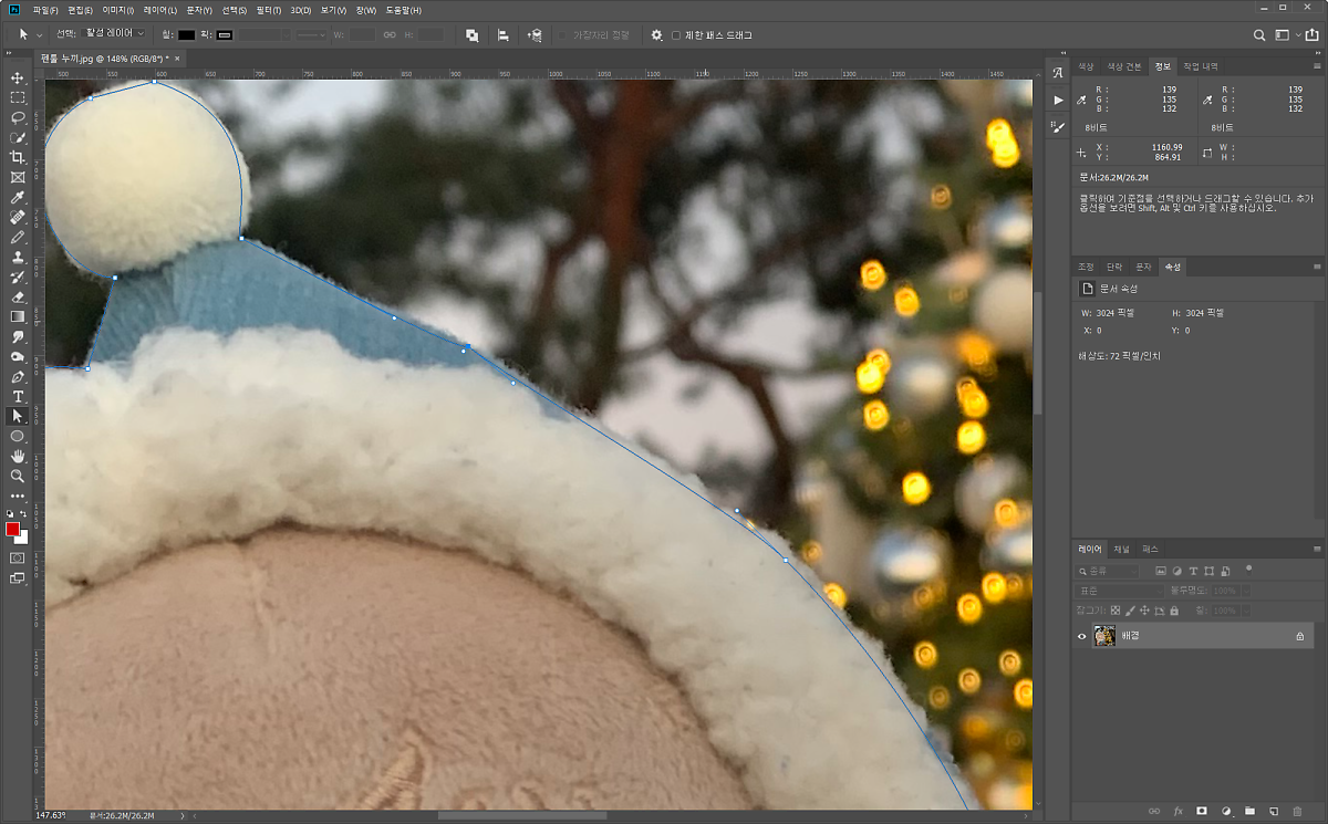 뒤에 트리 때문에 배경이 지저분해서 마법 봉으로는 누끼영역을 지정할 수 없겠네요 ㅠㅠ