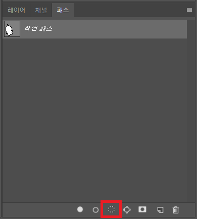 패스가 완성되었다면 선택영역으로 만들어야 해요. 패스 패널에서 점선으로 이루어진 아이콘을 선택해 주세요.