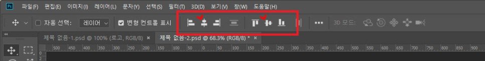 포토샵 상단에서 중앙 정렬을 시켜주세요.