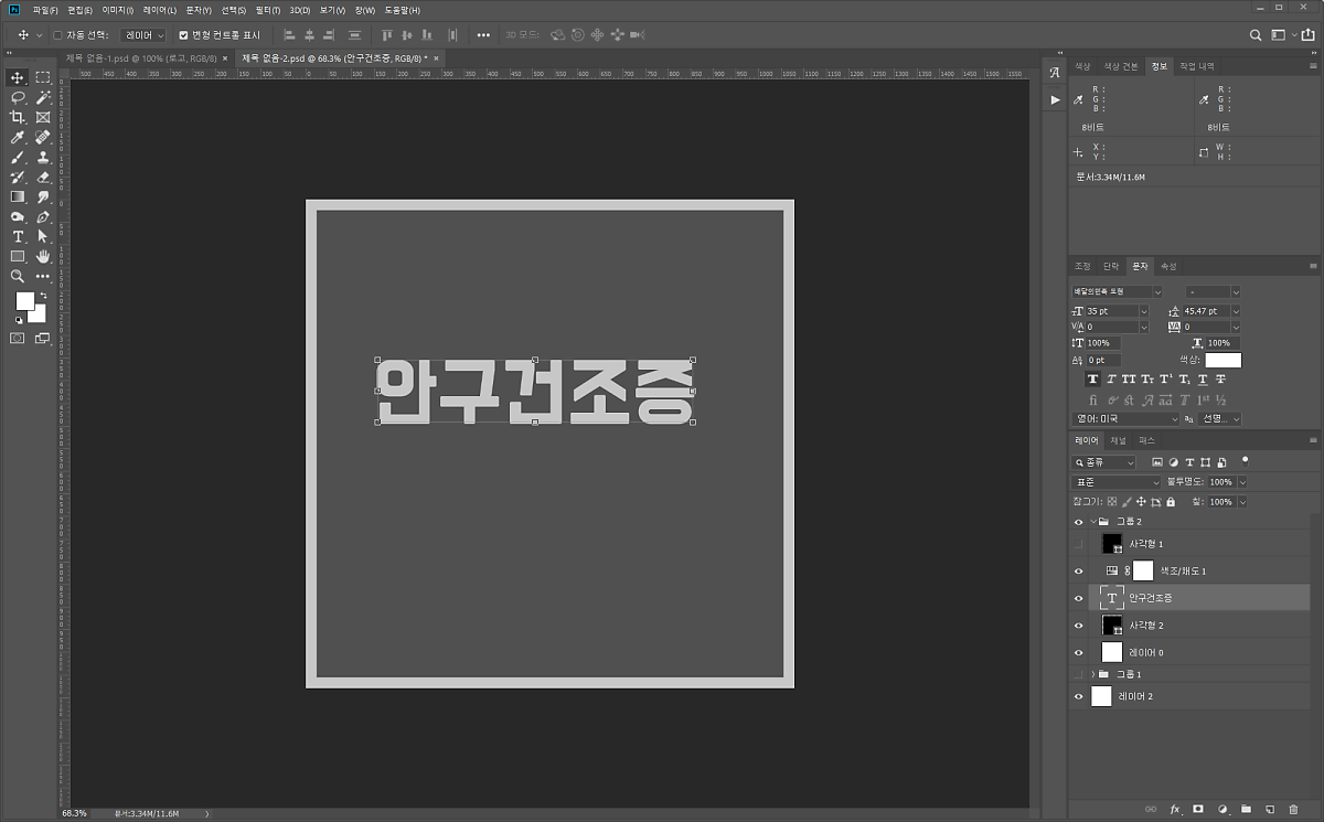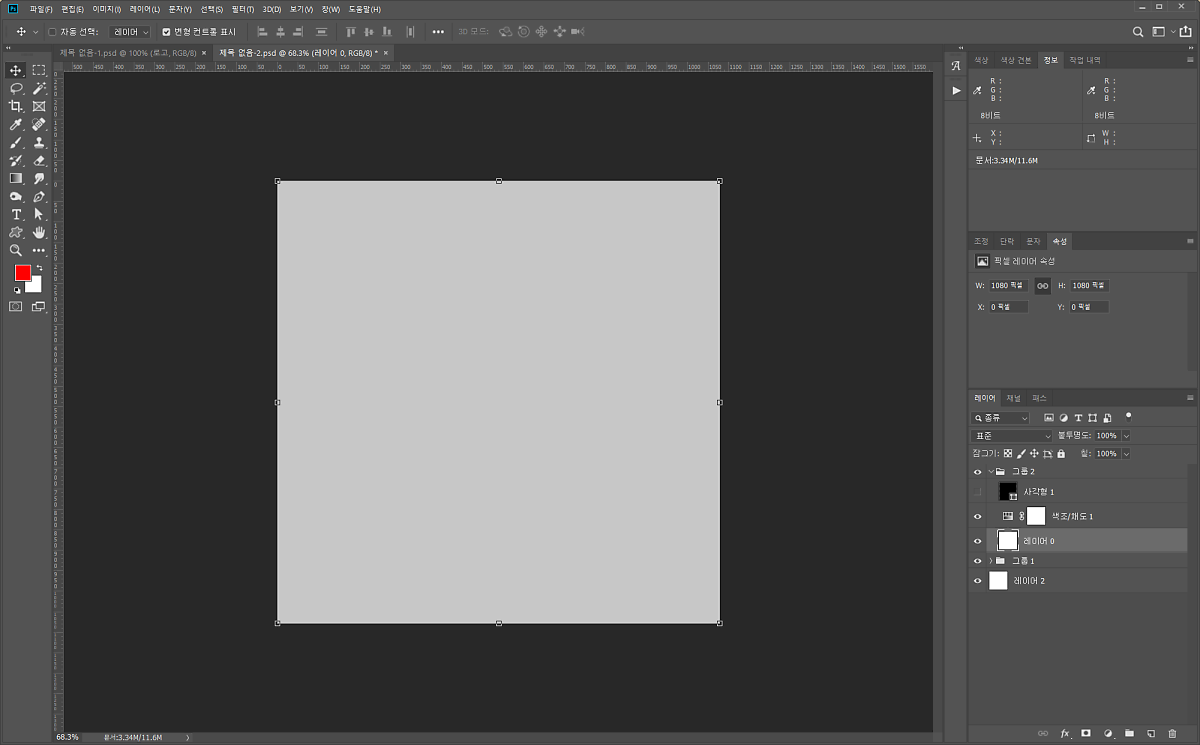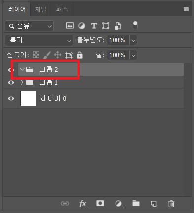지난 번에 메인 피드 디자인을 1번 그룹으로 묶어놓았죠. 이제 2번 그룹을 만들어서 두번째 페이지를 이어하면 되는데요. 같은 포토샵 파일에 그룹만 새로 만들어주시면 됩니다.