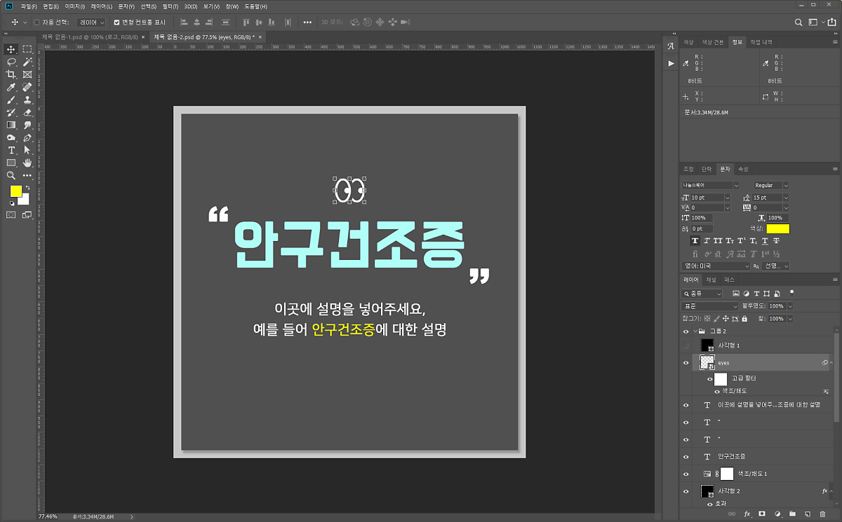 텍스트 도구 단축키 T를 누르고 제목에 해당하는 텍스트를 입력해주세요.