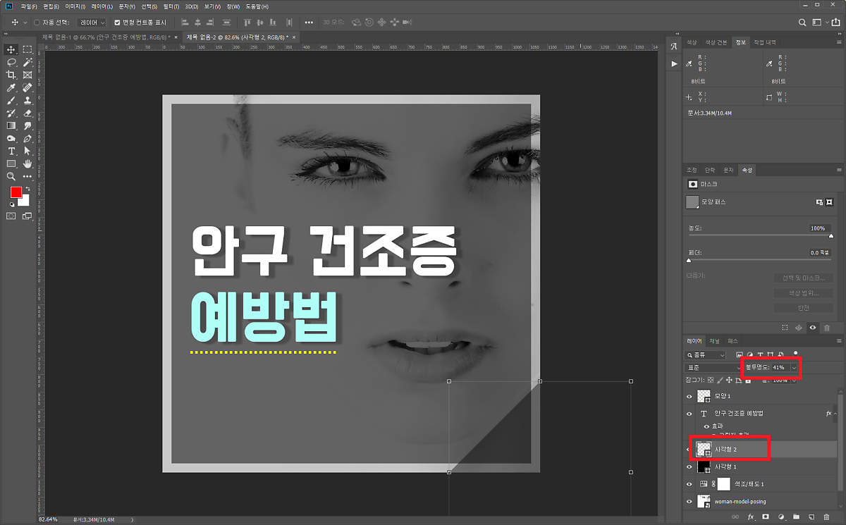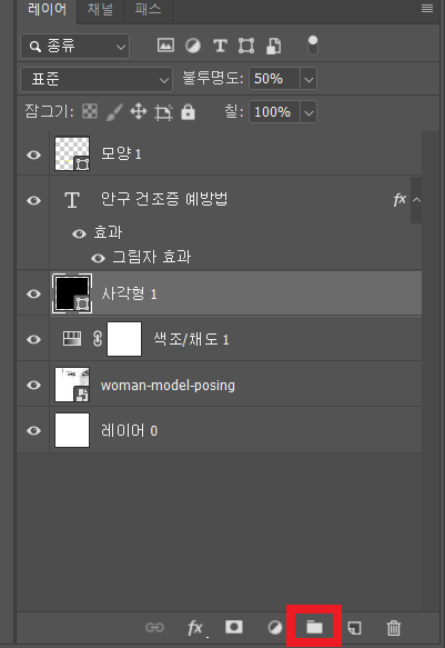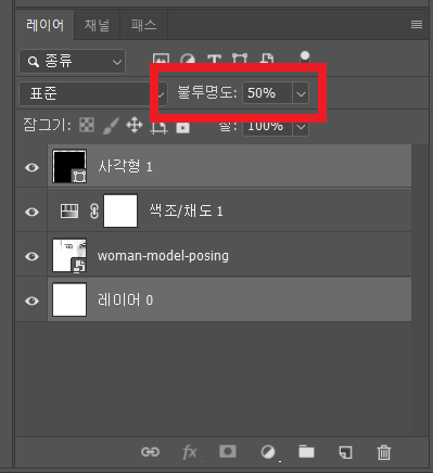 그 후에 사각형 레이어에서 불투명도를 50~ 59% 정도로 주세요.