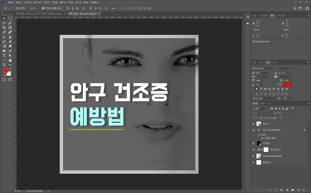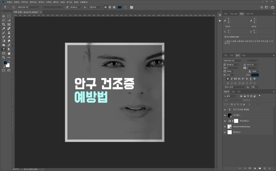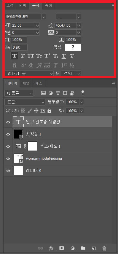 이제 가장 중요한 텍스트를 넣을 차례!! 단축키 T를 눌러 글자 도구를 클릭해주세요. 그 후 텍스트를 입력해주시면 되는데요.