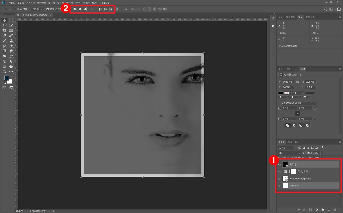 빨간 부분이 바뀐 거 확인이 되시나요? 고급 개체로 변환하는 이유는 이미지 손상을 줄이고자 하는 것인데요. 픽셀 단위로 되어있는 이미지는 크기를 키우거나 줄이면 화질에 손상이 오기 때문에 되도록이면 고급 개체로 변환한 후에 작업해주시는 것이 좋습니다.