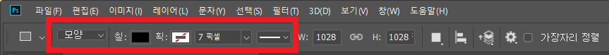 이 도형의 획, 칠, 모양을 수정하고 싶으시면 상단의 아이콘을 확인하세요. 획은 없음 / 칠은 검은색으로 수정해주세요.