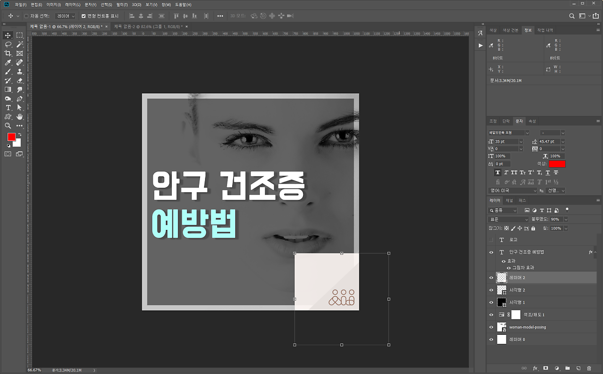 이후 저는 회사로고를 넣어봤는데요. 위에 만든 사 각형 레이어 위로 로고 레이어를 얹어주면 됩니다.