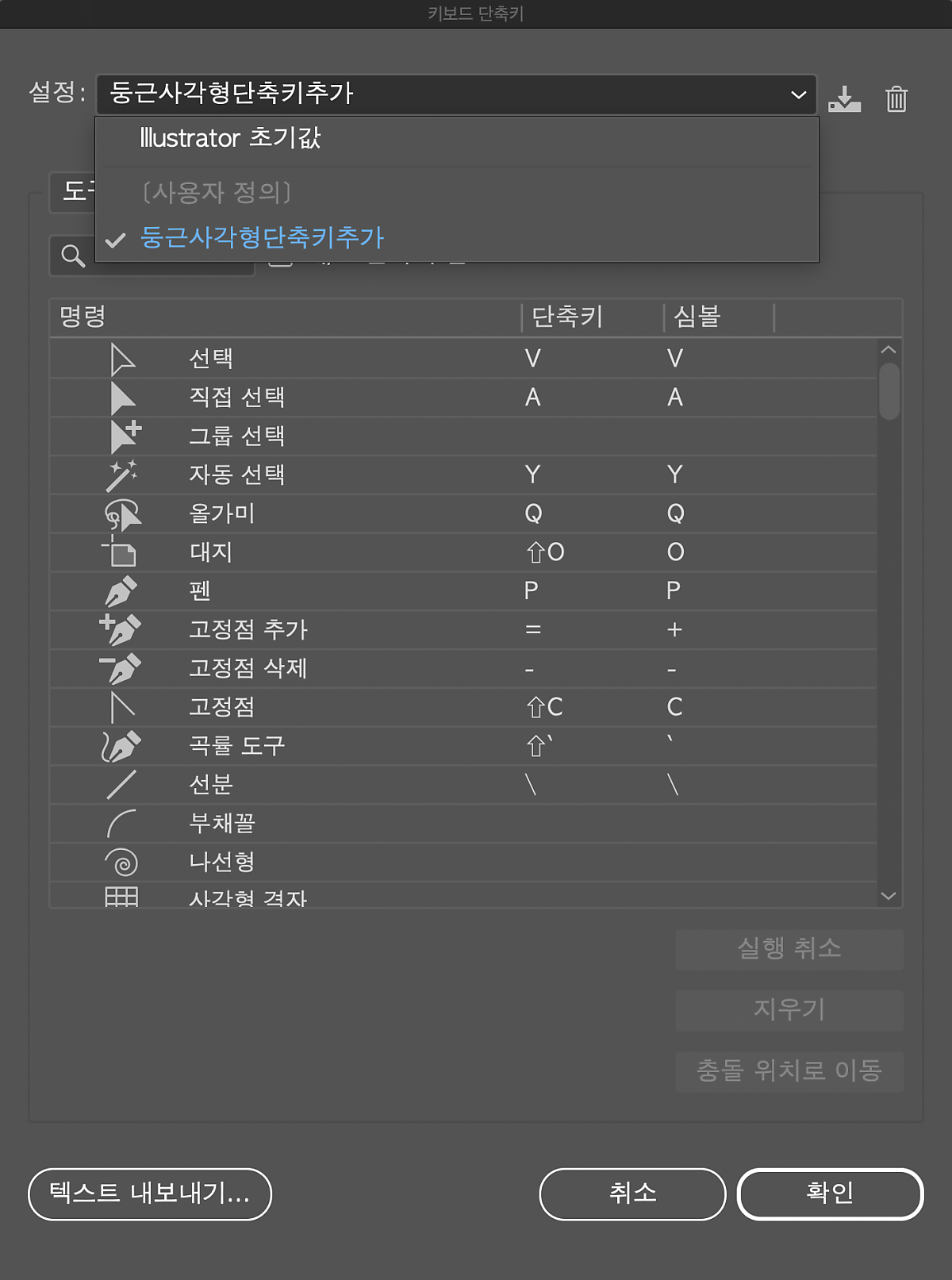 사용하지 않는 기능들은 단축키를 삭제하고 새롭게 설정해도 좋을 것 같네요!