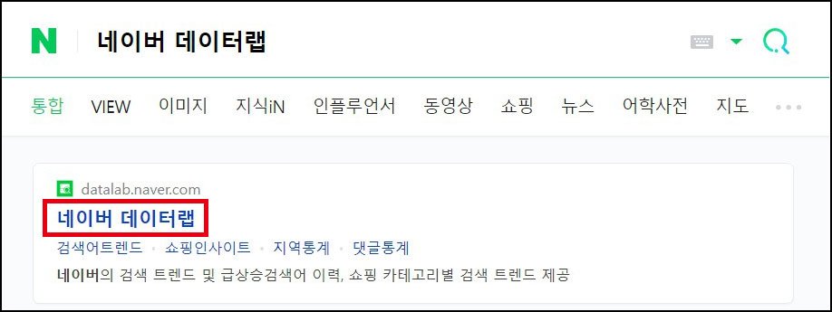 제일 먼저 네이버 데이터랩을 검색한 후 사이트에 들어갑니다.