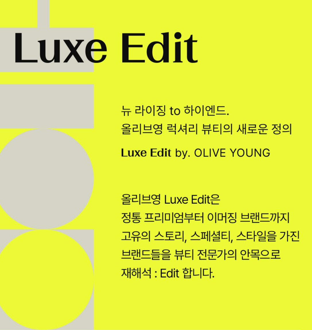 뚜벅뚜벅, 몇 걸음 걷다 보면 편의점 못지않게 쉽게 목격할 수 있는 곳이 있어요. 뷰티계의 편의점, 바로 올리브영인데요. 올리브영은 올영라이브, 오늘드림 등 온라인 소비 트렌드를 빠르게 반영한 서비스를 제공하며 뷰티 전문 스토어 1위를 굳건하게 지켜내고 있어요. 특히 최근 7월에는 프리미엄 화장품 전문관을 새 단장하여 ‘럭스에디트(Luxe Edit)’란 이름으로 서비스를 선보였습니다.