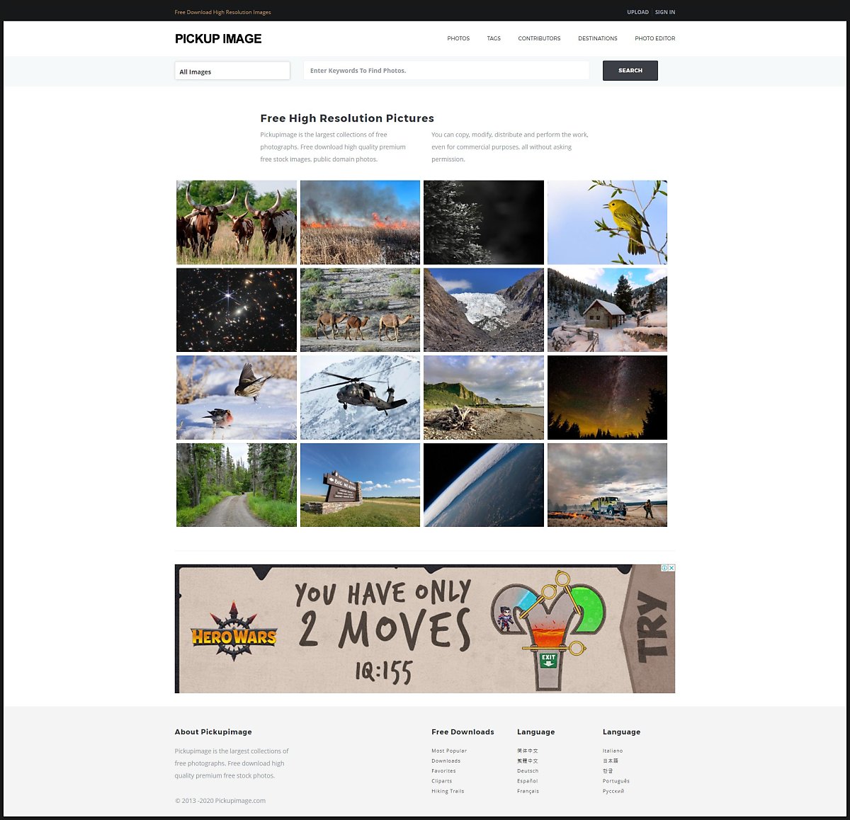 고해상도의 자연과 풍경 이미지가 많은 사이트입니다. 하단에 있는 원하는 언어를 선택하여 사이트를 이용하실 수 있습니다.