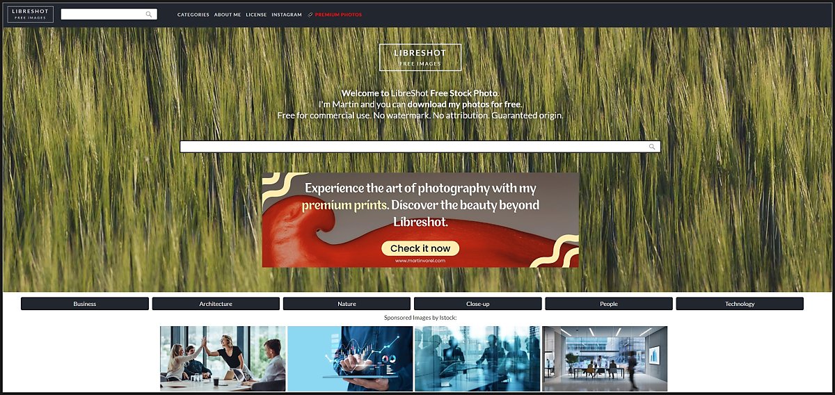 방문자들이 무료로 기부한 사진들로 구성되어 있으며, 홈오피스나 여름여행 등 유니크한 카테고리로 이루어져있습니다. 또한 최신순, 인기순, 다운로드순, 라이크순 등으로 정렬하여 이미지 확인도 가능합니다.