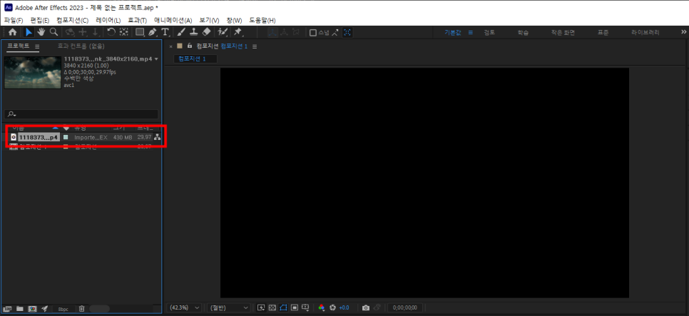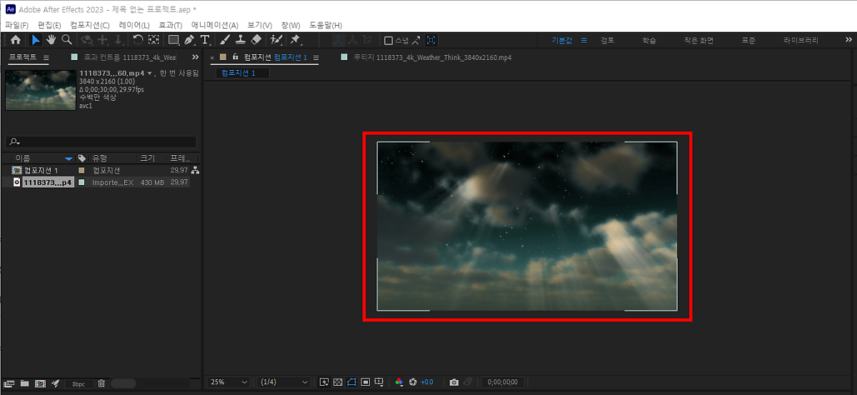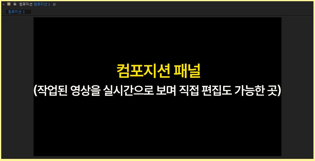 작업된 영상을 실시간으로 확인하고 이미지나 영상을 재생하여 직접 편집도 할 수 있는 패널이 컴포지션 패널입니다.