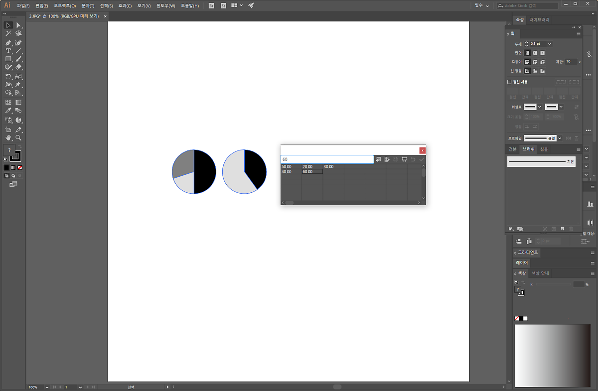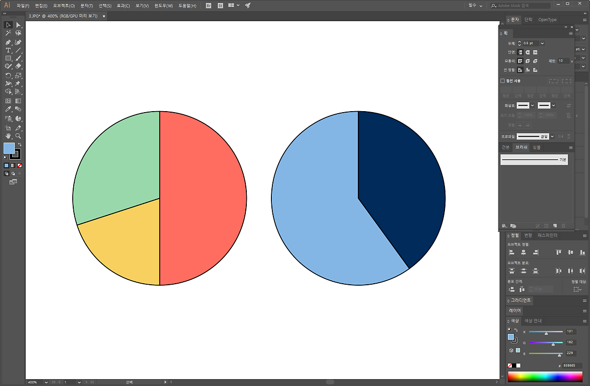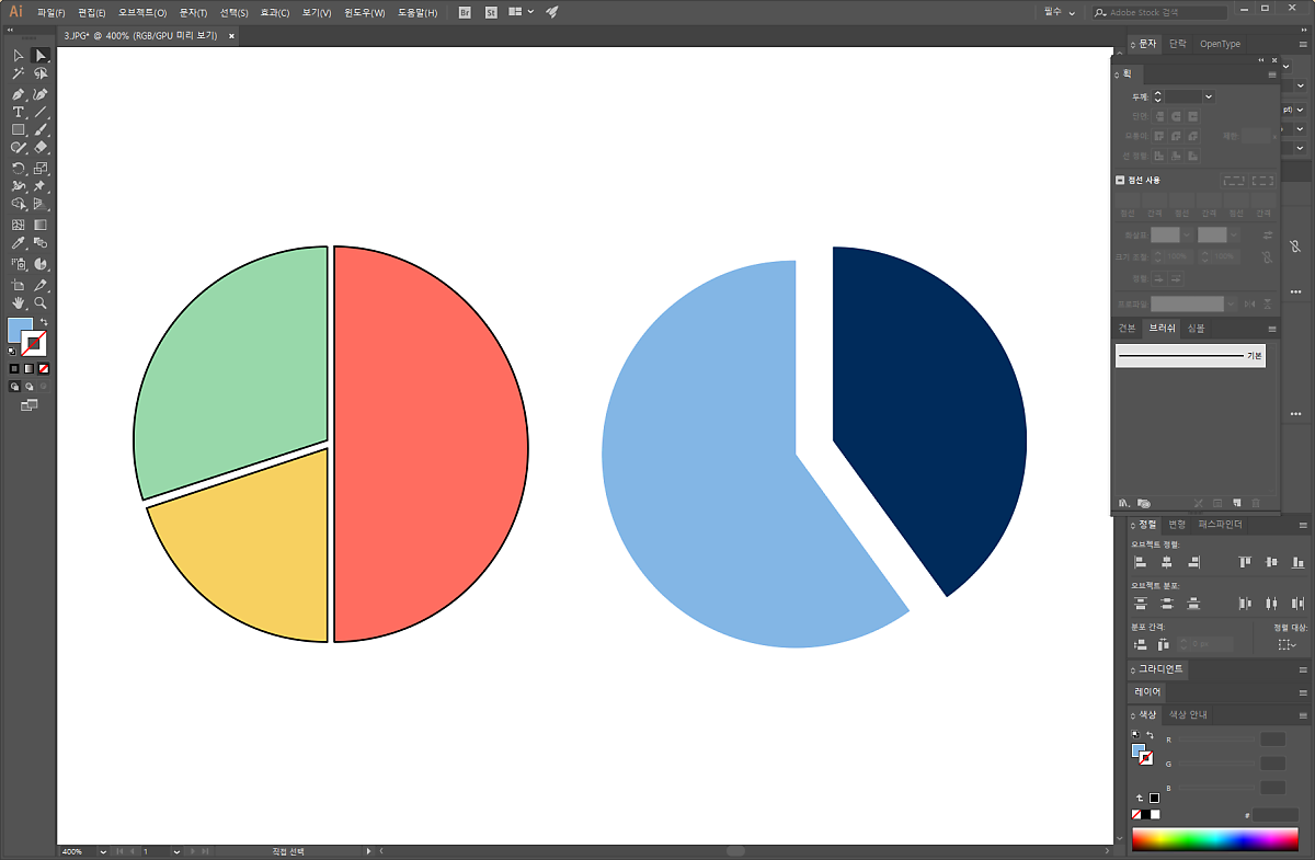 그대로 사용한다면 일러스트를 이용하는 이유가 없겠죠? 파이 그래프도 다양한 디자인 변경이 가능하답니다.