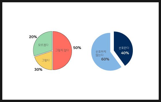 또 파이 하나를 떼어내는 모양도 가능한데요. 이 경우 필요한 부분을 강조하는 데 유용하게 쓰일 수 있어요.