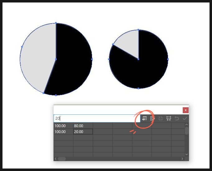 엑셀 표같이 생긴 이 표에 값을 입력해주면 그에 따라서 파이 그래프의 모양이 변하게 되어요.