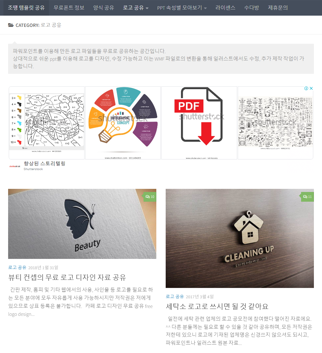템플릿이외에도 ppt를 활용한 로고 공유나 다양한 양식 공유등 다양한 정보 또한 얻을 수 있다는 장점도 있습니다.