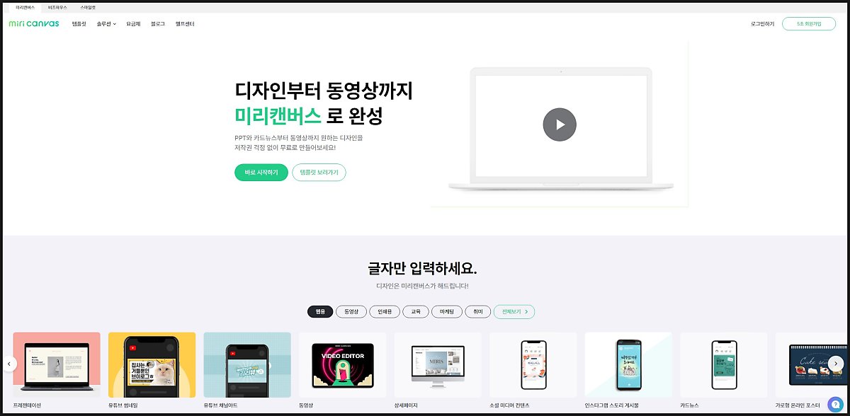 미리캔버스도 망고보드와 똑같게 웹에서 제작가능한 사이트입니다. 프로그램을 따로 설치하지 않아도 되는 장점이 있습니다.