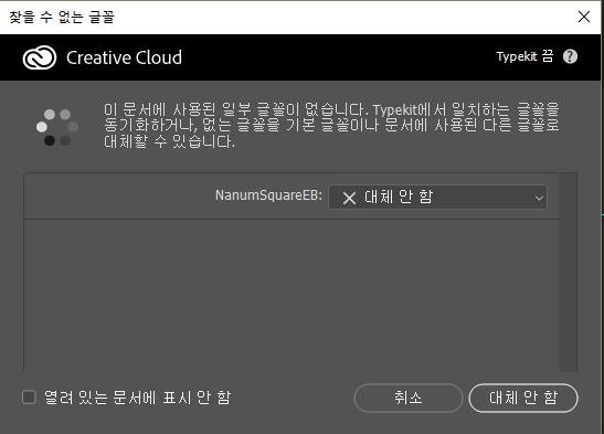 글꼴이 호환이 되지않는다는 경고창이 뜨면