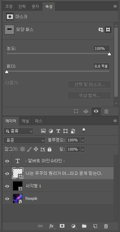 모양패스가 생기고 텍스트레이어가 변경됩니다.