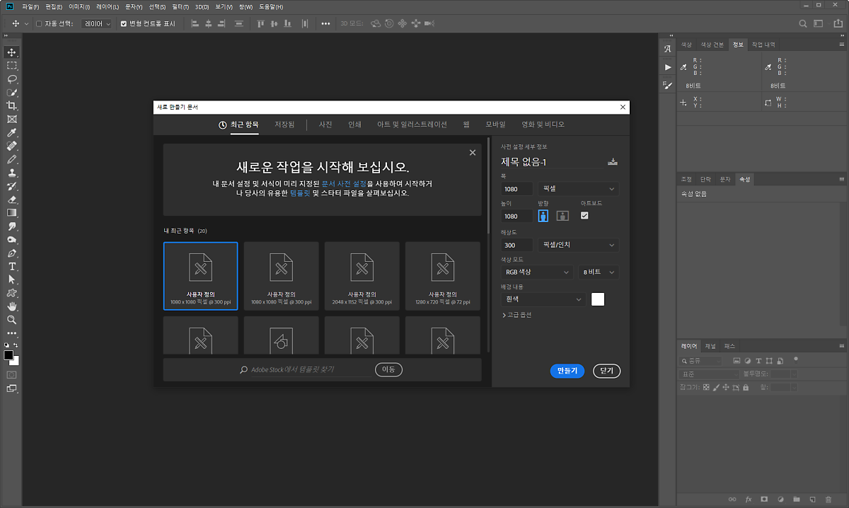 0. 포토샵 새프로젝트 생성