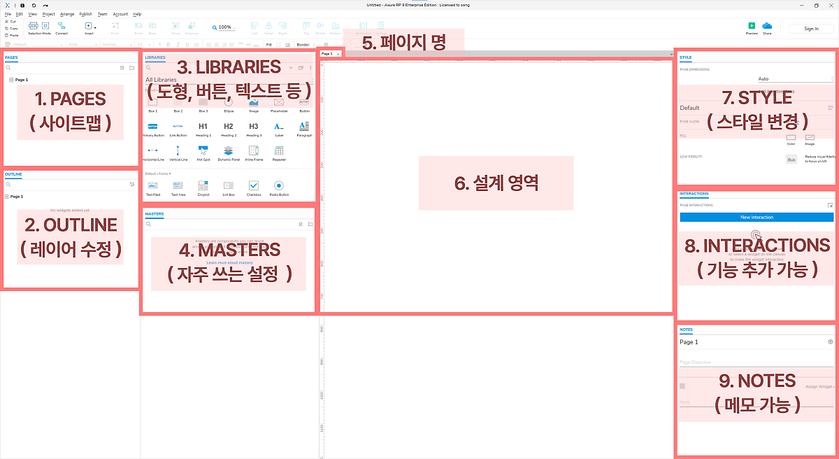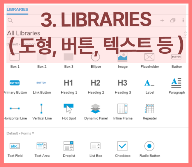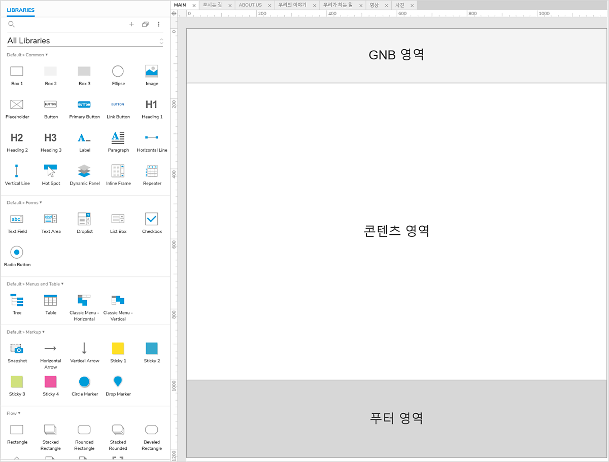 여기까지 Axure의 기본적인 화면 구성에 대해 알려드렸는데요!