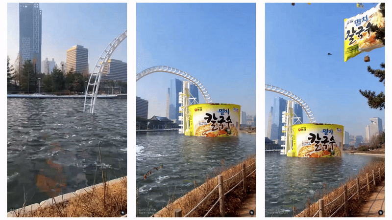 농심은 1997년 출시된 장수 브랜드 멸치 칼국수를 젊은 층에게 친숙하게 알리기 위해 FOOH를 택했습니다. 10초 미만의 짧은 영상은 멸치 모양의 롤러코스터가 칼국수 제품으로 들어가는 모습이 담겨 있어요. 바닷속에서 힘차게 튀어 오르는 멸치 모양의 롤러코스터가 제품으로 퐁당 들어가는 모습을 보니, 저 제품, 진짜로 진한 멸치 국물로 우려낸 칼국수 일 것 같은 생각이 들지 않나요? 해당 영상은 243월 기준, 누적 조회수 1천만 회를 넘겼는데요. 짧은 콘텐츠 하나로, 많은 소비자들에게 닿을 수 있는 힘! FOOH를 똑똑하게 활용한 기획력에 있지 않을까 싶네요.
