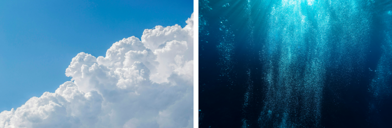 물, 바다, 숲, 안개 낀 새벽 등을 연상시키는