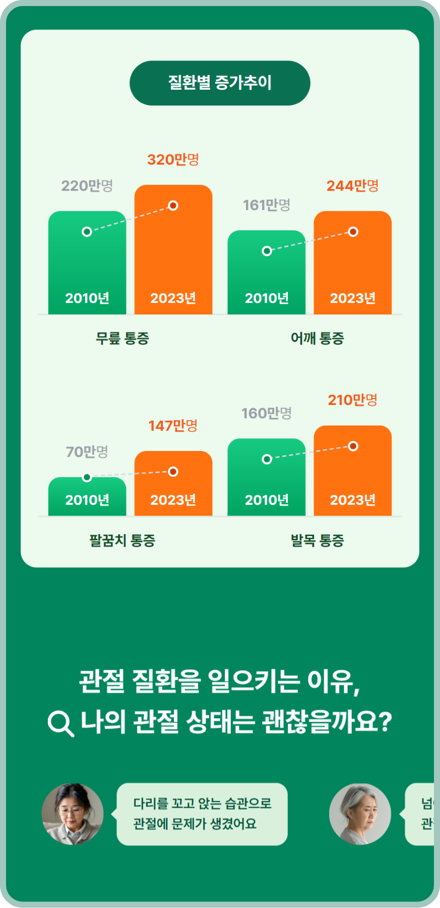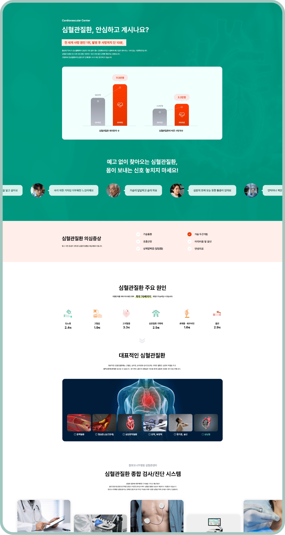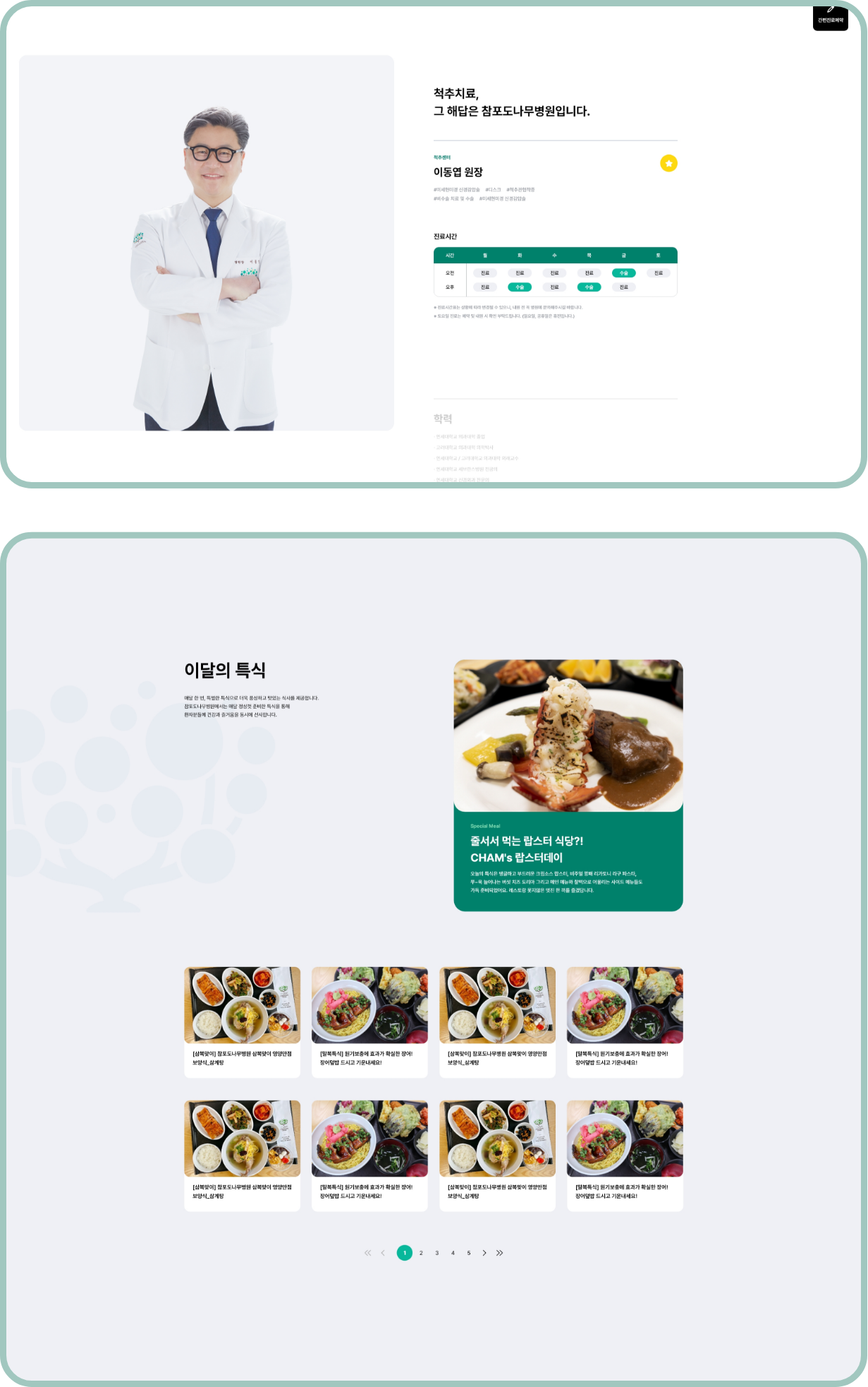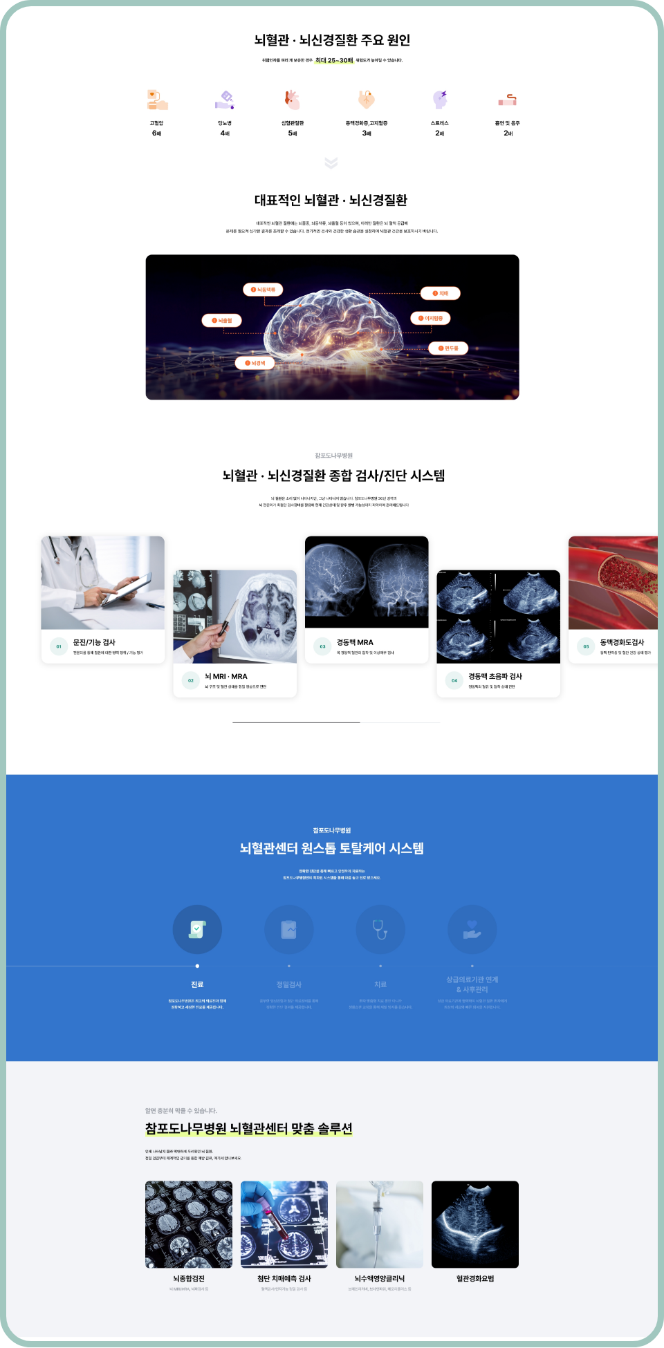브랜드의 컬러와 타이포그래피, UI 스타일을 통합 적용하여 병원의 신뢰성과 일관된 아이덴티티를 표현하였습니다.