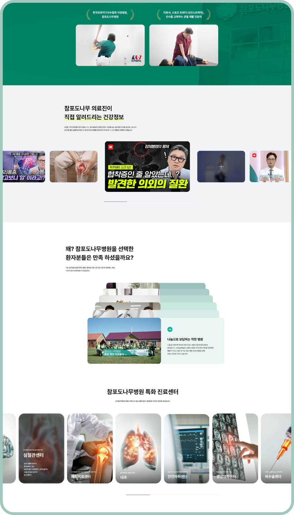 이번 리뉴얼을 통해 참포도나무병원은 디지털 환경에서의 경쟁력을 한층 강화하고, 보다 직관적인 사용자 경험을 제공할 수 있는 기반을 마련했습니다.